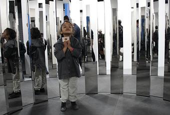 Sur près de 4000 m2, l’exposition montre comment, de Calder à Kapoor, de nombreux artistes ont traité les notions de vision, d’espace, de lumière et de mouvement dans leurs œuvres. De nombreuses installations étant interactives, Melle A et ses petites copines ont ainsi pu pénétrer des brumes colorée, se promener dans un labyrinthe multipliant les expériences sensorielles, observer de nombreuses illusions d’optique…bref, ressentir, tester, éprouver…Courrez-y !