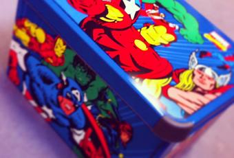 J'ai dégotté cette jolie boîte de supers héros hier en faisant les magasins, alors là vous vous dites "elle fait encore les boutiques!" mais je ne faisais qu'un travail de repérage pour le nouveau canapé de ma frangine et je ne me suis fait plaisir qu'en achetant un étendoir, vous voyez tout à coup tout ceci semble moins excitant n'est ce pas?