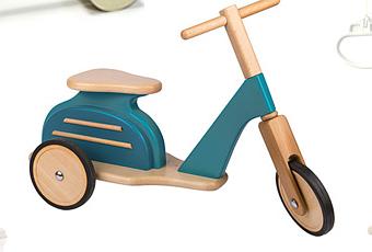 Lapin à tirer Rick Etoiles blanches – STUDIO DELLE ALPI – 54€ / Doudou musical Hibou FERM LIVING – 27€ / Porteur Le scooter bleu – MOULIN ROTY - 159€ / Peluche Petunia – MOULIN ROTY - 29,70€ / Porteur Lapin MOULIN ROTY - 129€
