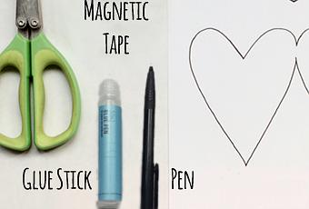 Etape 4 : Au dos de votre coeur, collez un morceau de ruban adhésif magnétique.